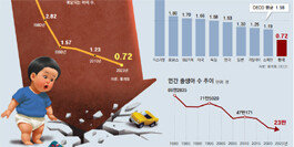 지난해 4분기 한국의 합계출산율이 0.65명으로 역대 최고치까지 내려갔습니다. 1년 전보다 0.05명이 줄었습니다. 출산율 0.7명대가 처음으로 붕괴된 겁니다. 연간으로 따지면(0.72) 간신히 0.7명대를 지켰지만 이 추세대로라면 올해는 연간으로 따져도 0.6명대로 주저앉을 것이란 우려가 큽니다. 인구가 몰려 있는 서울의 경우 이미 0.55명까지 하락한 상태입니다.