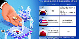 동아일보가 한미일 3개국의 반도체 관련 법안을 바탕으로 5년 동안 총 5조 원을 투자해 반도체 공장을 새로 짓는 기업의 가상 사례를 분석한 결과, 한국에서 받을 수 있는 지원금 규모는 세액공제 2300억 원인 것으로 조사됐습니다. 반면 미국에서는 최대 1조 7500억 원, 일본에서는 최대 2조 5000억 원을 지원받는 것으로 분석됐습니다. |
