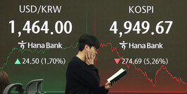 이날 코스피는 전 거래일 대비 5.26%(274.69포인트) 하락한 4,949.67에 거래를 마쳤습니다. 지수 기준으로는 1983년 코스피 산출이 시작된 이후 사상 최대 하락 폭이었습니다. 외국인이 2조5168억 원, 기관은 2조2126억 원어치를 각각 순매도하며 지수를 끌어내렸습니다.