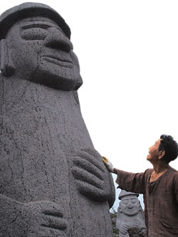 돌하르방은 제주를 상징하는 대표적인 이미지. 장 옹은 그 돌하르방을 만드는 명장이다. 1993년 노동부가 지정한 ‘석공예 명장’. 같은 해 ‘신한국인’으로 지정됐다.