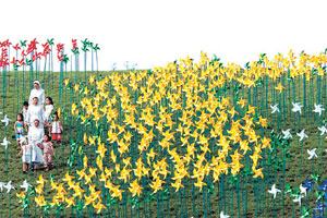 음악의 언덕 옆에는 ‘바람의 언덕’이라 명명한 잔디 언덕에 바람개비 3000여 개로 만든 세계 지도가 눈길을 끈다.