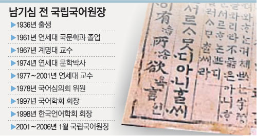 한평생 우리말 지킴이로 살아온 원로 국어학자의 말치고는 파격적이다. 남기심(南基心·70) 전 국립국어원장은 “표준말은 국어학이 아니라 생활언어의 관점에서 다뤄야 한다”며 “언어라는 과학적 구조체와 삶이 만나는 접점에 말이 있다”고 강조했다.