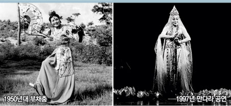 1988년 서울 올림픽 때 잠실 올림픽 주경기장에서 2000명의 무용수가 공연해 세계를 놀라게 한 스펙터클한 ‘화관무(花冠舞)’. 전통 궁중무용인 ‘정재(呈才)’로 생각하기 쉽지만 이 춤도 역시 1948년 만들어진 ‘신(新)무용’이다.