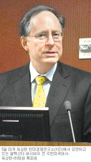 알렉산더 버시바우(사진) 전 주한 미국대사가 5일 9월 퇴임 후 첫 공개강연을 통해 3년간의 주한 미국대사 시절의 후일담을 허심탄회하게 털어놓았다.