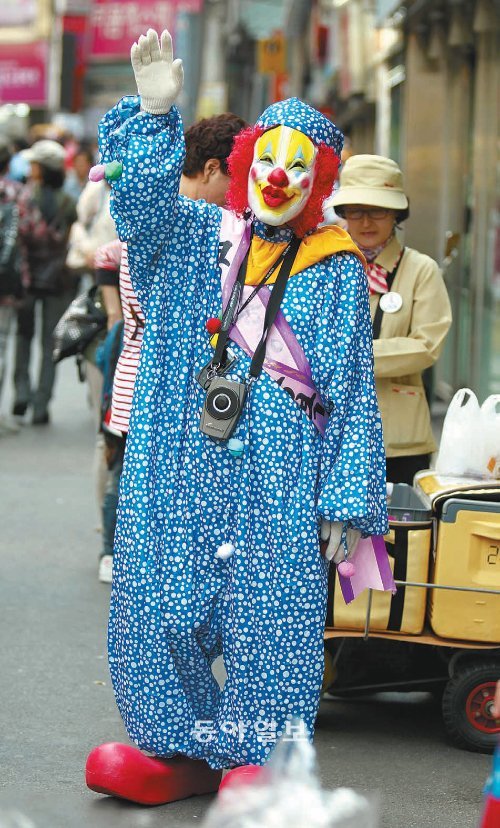 외국인 쇼핑객 호객하는 광대