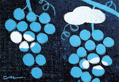 청포도는 다 익어도 빛깔이 푸른 포도다. 칠월 어느 쾌청한 날, 포도 잎사귀 아래 송이송이 탐스러운 청포도가 주렁주렁 매달려 무르익어 가는데, ‘먼 데 하늘이’ 알알이 비췻빛으로 영롱한 포도에 들어와 박힌다. 푸른 포도 알 하나하나 그 작은 몸에 하늘을 담고 있다. 그 광경만으로도 홀릴 만한데 포도밭 저 아래 바다가 넘실거린다. ‘흰 돛단배 곱게 밀려서’ 오고. 실제 시인이 잘 알고 사랑하는 고장의 꿈결같이 아름답고 평화로운 풍경을 배경으로, ‘하늘 밑 푸른 바다가 가슴을 열고/흰 돛단배가 곱게 밀려서 오면//내가 바라는 손님은 고달픈 몸으로/청포를 입고 찾아온다고 했으니’, 조국 광복에의 염원을 서정적 시어에 담았다. ‘육사’는 시인이 항일운동으로 수감됐을 때의 수인번호 ‘64’에서 딴 호(號)라고 한다.