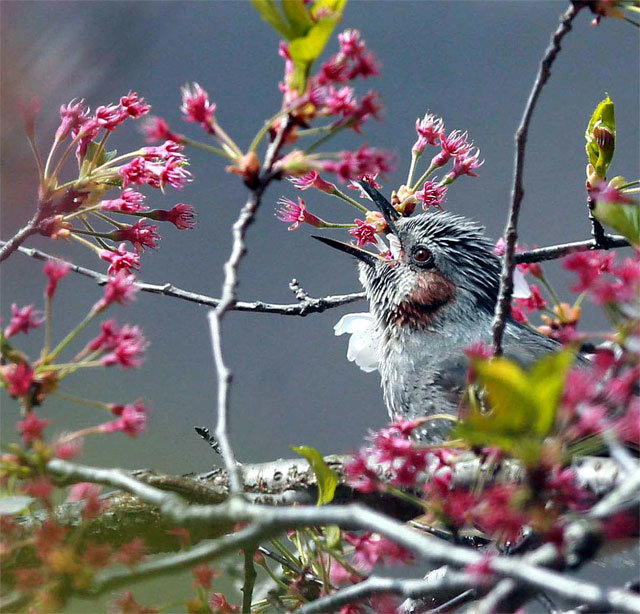‘화무십일홍’이라고 했던가요. 마음을 뒤흔든 벚꽃 대신 불그스레한 꽃받침만 남았네요. 화려함은 짧아서 아쉽고, 권력은 잠깐이라 집착하나 봅니다. 잔인한 시간은 모든 걸 정리하고 그래서 욕심은 덧없습니다. 17일 경남 함양군 벚꽃길의 황량한 나뭇가지에 찾아온 직박구리.