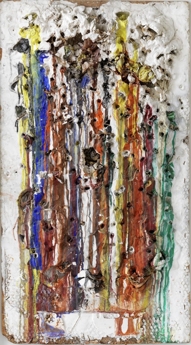 미술교육을 받은 적 없는 니키 드생팔은 일명 ‘사격 회화(Shooting Painting)’로 프랑스 화단에 혜성처럼 등장했다. 물감 주머니를 감춘 흰색 부조에 총을 쏘아 물감이 사방에 튀고 흐르게 하는 전위적인 추상화로, 작가의 어릴 적 트라우마에서 기인한 작품이었다.