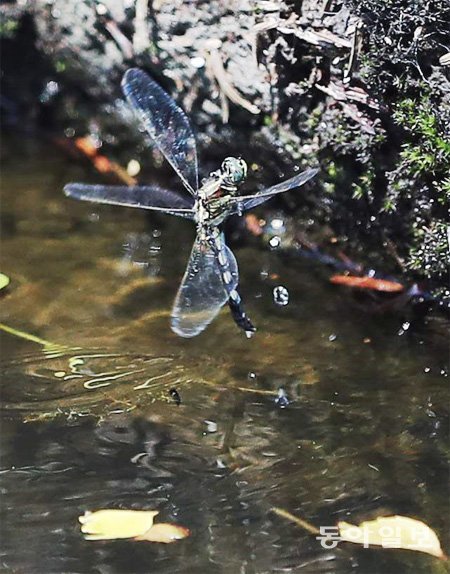 잠자리가 퐁당퐁당 물을 튀기며 알을 낳고 있네요. 천적인 물고기가 자신을 노리고 있을지 모르지만 이 가을, 잠자리는 온 힘을 다해 할 일을 할 뿐입니다.