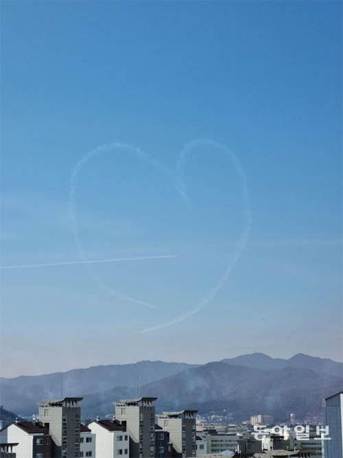 파란 가을 하늘에 공군 특수비행팀 블랙이글스 비행기가 ‘하트’를 수놓습니다. 여러분의 마음속에도 하트가 있나요?