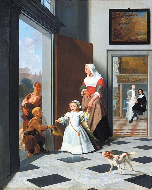 로테르담 출신의 오흐테르벌트는 평생 동안 상류층의 일상을 주제로 많은 그림을 그렸다. 단순한 외적 묘사가 아니라 이렇게 가난한 사람을 돕거나 서로 다른 계층 사람들이 상호작용하는 장면을 통해 도덕적 교훈을 주고자 했다.