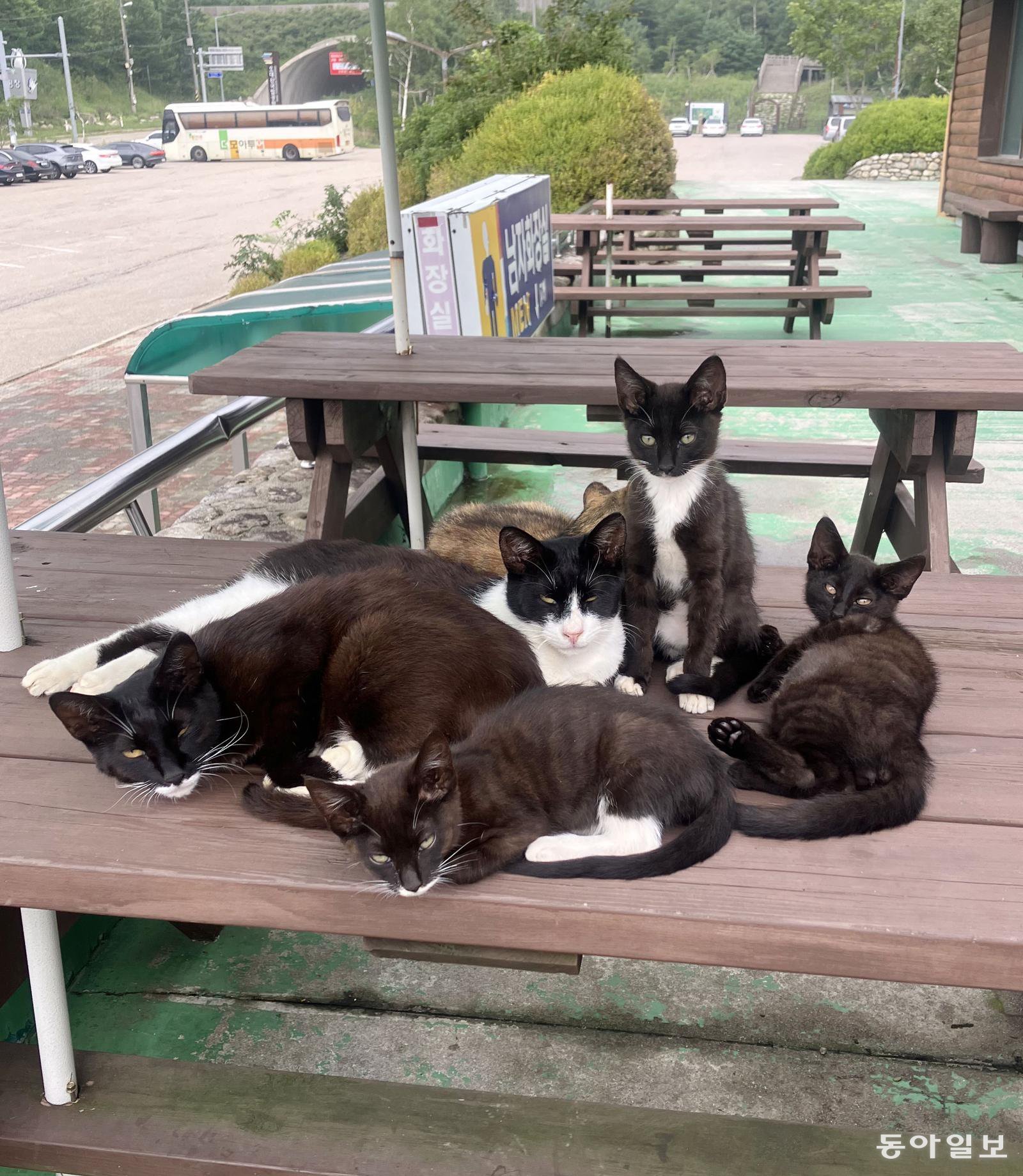 해발 1000m 대관령 고개마루의 밤은 사시사철 춥습니다. 바둑고양이 가족은 서로의 체온에 기대 밤을 보낸 뒤 함께 아침을 맞습니다.