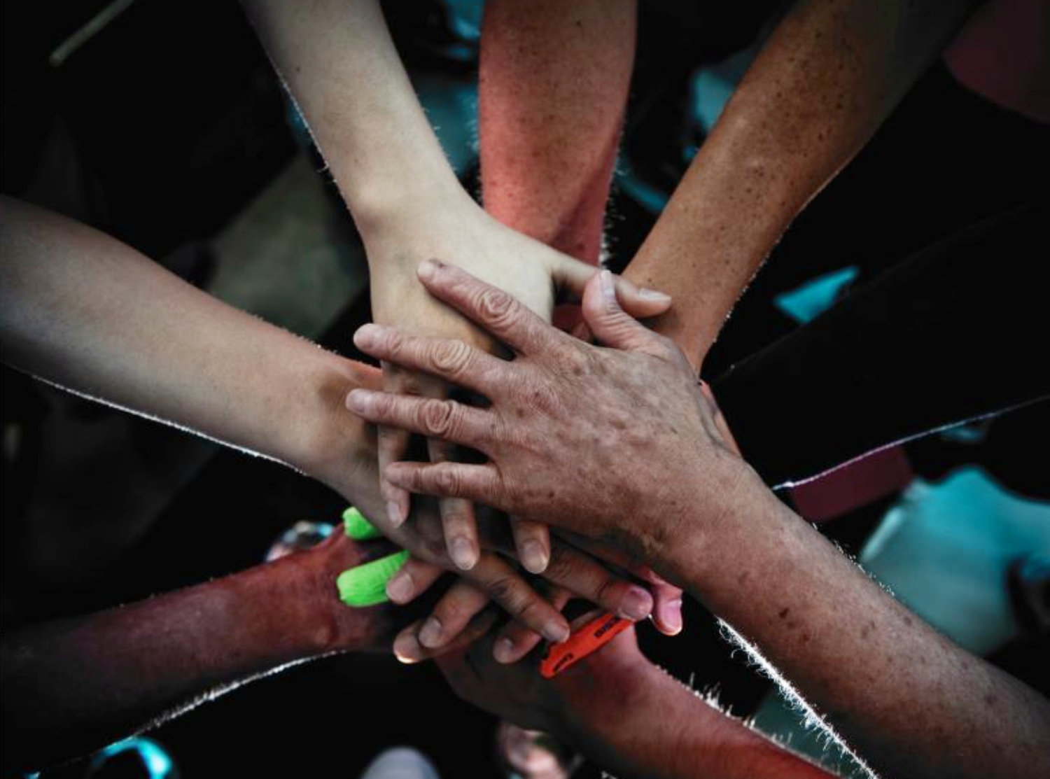 치료 환경과 인식 개선을 위해 건선 환우들이 모여 손을 잡은 모습. (사)한국건선협회 제공