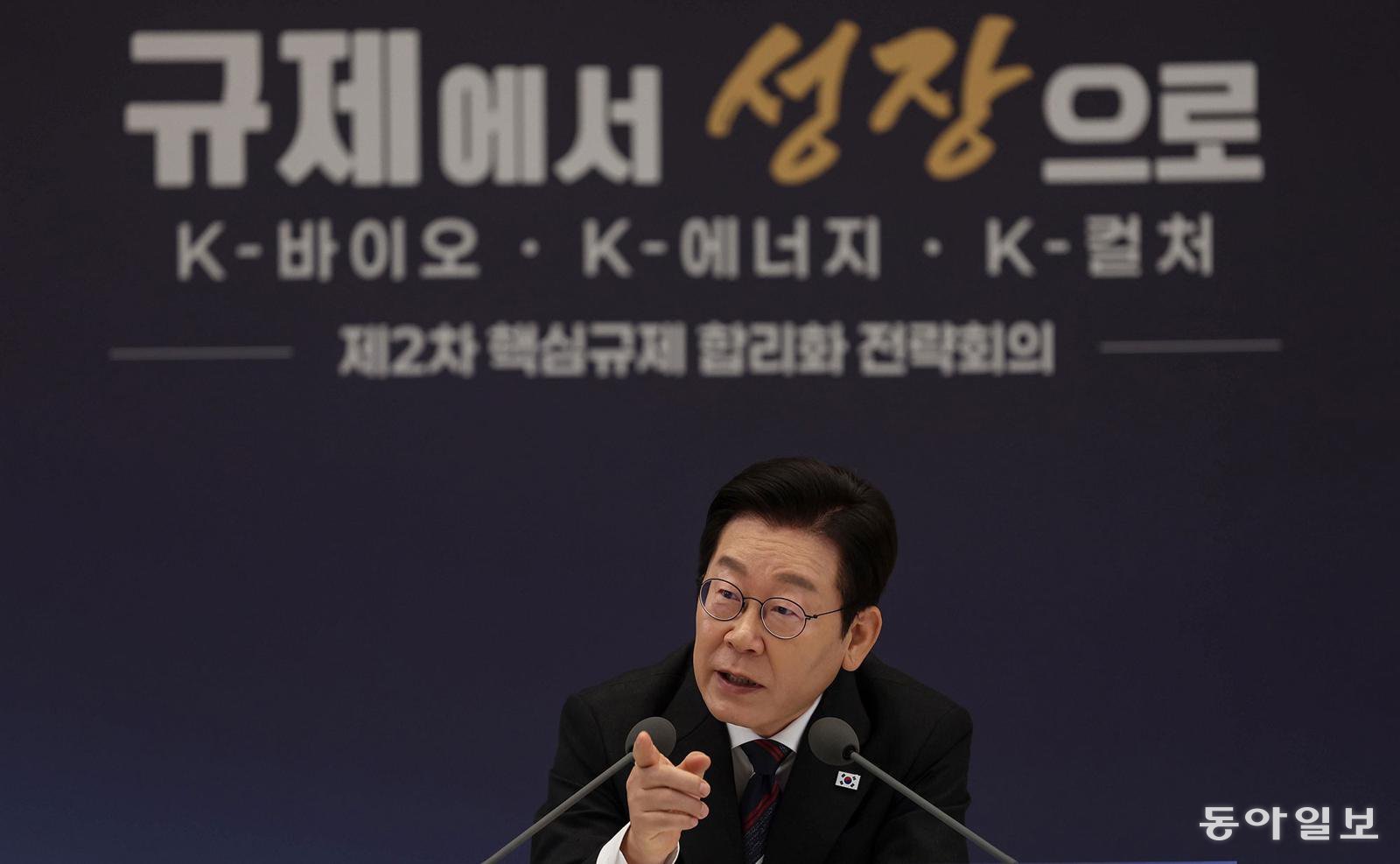 이재명 대통령이 16일 용산 대통령실에서 열린 제2차 핵심규제 합리화 전략회의에서 발언을 하고 있다. 송은석 기자 silverstone@donga.com