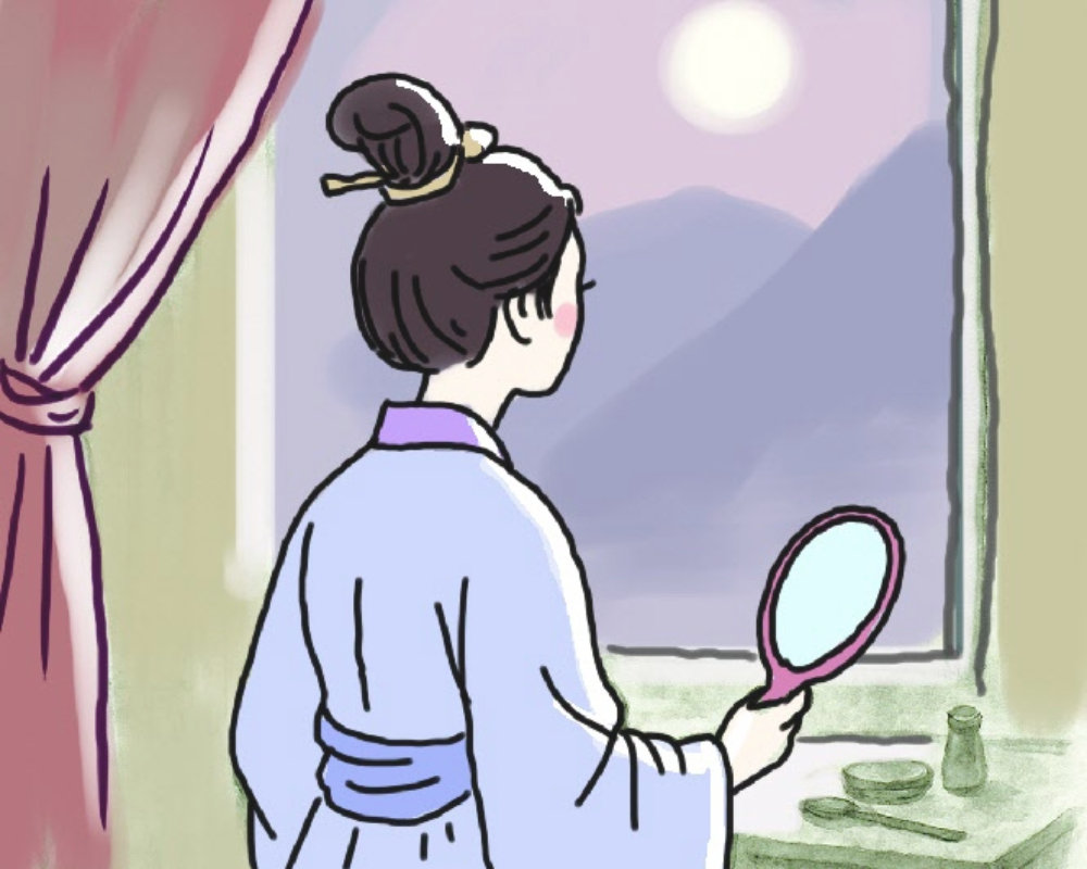 궁궐이라는 화려한 무대의 허상 앞에 선 여인. 미모 때문에 궁에 들어왔지만, 그것은 행운의 열쇠가 아닌 족쇄였다. 치장이 무의미하다는 체념에 화장하려던 손길을 멈춘다. 울적한 마음과는 딴판으로 창밖은 화사하기 그지없다. 따스한 봄바람 속에 새소리는 왁자지껄 부서지고 햇살 아래 꽃 그림자는 겹겹이 드리운다. 세상은 저리도 환하기만 한데 슬픔은 오히려 배가한다. 급기야 소환되는 지난날 고향에서의 추억들. 친구들과 어울려 연꽃을 따던 시절, 노래와 웃음으로 가득했던 그 순간들이 궁중의 화려함보다 더 선연하게 아로새겨진다. 자유의 기억이 아름답게 느껴질수록 현재의 비극은 더욱 날카롭게 다가선다. 도무지 위로가 될 수 없는 추억이기에 더 심란해진다.