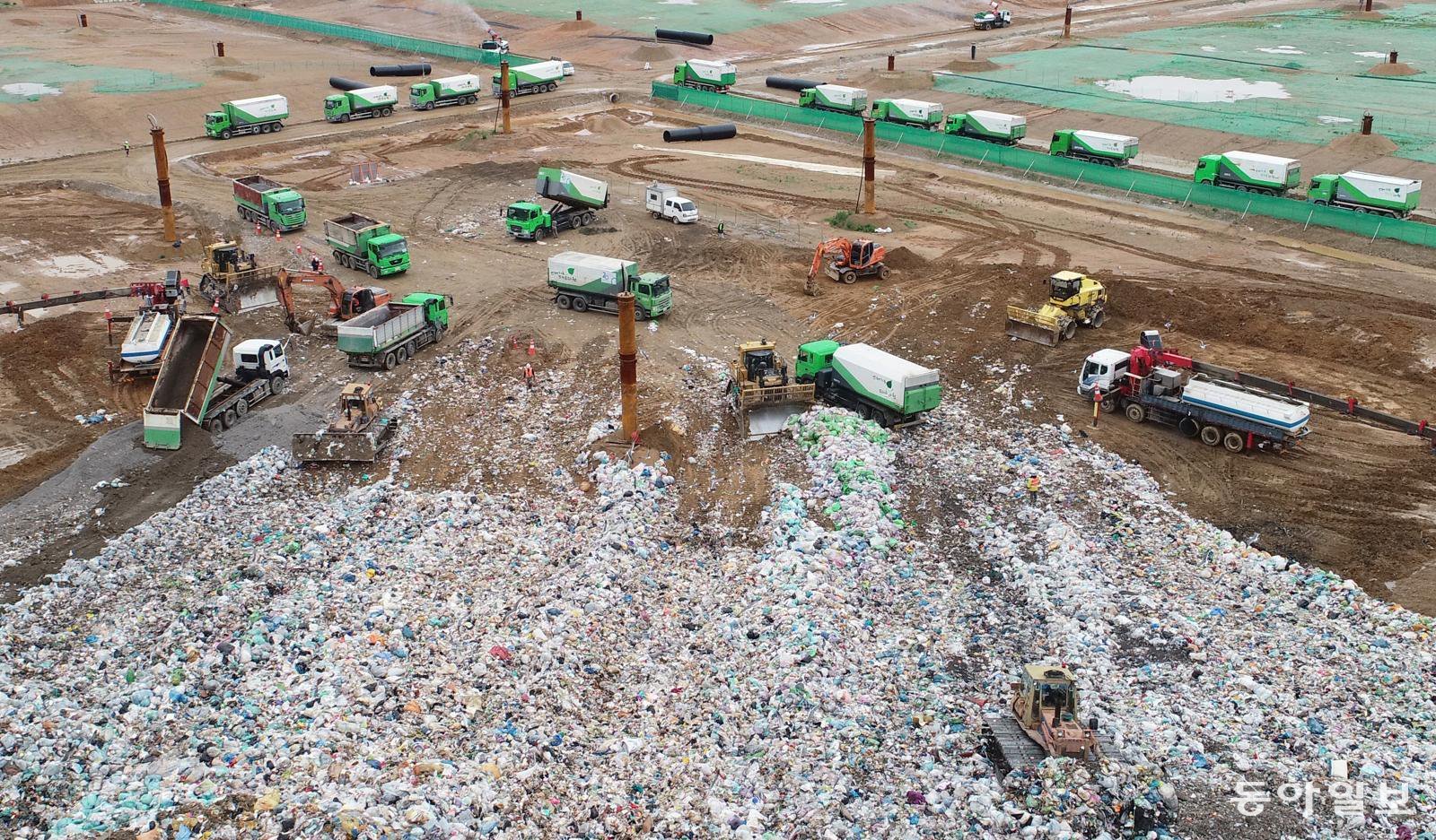 인천 서구 수도권매립지 3-1공구에서 쓰레기를 매립하는 모습. 2026년 1월 1일부터 수도권 생활폐기물 직매립이 금지되지만 소각장 구축이 원활하게 진행되지 않아 빨간불이 켜졌다. 인천=양회성 기자 yohan@donga.com