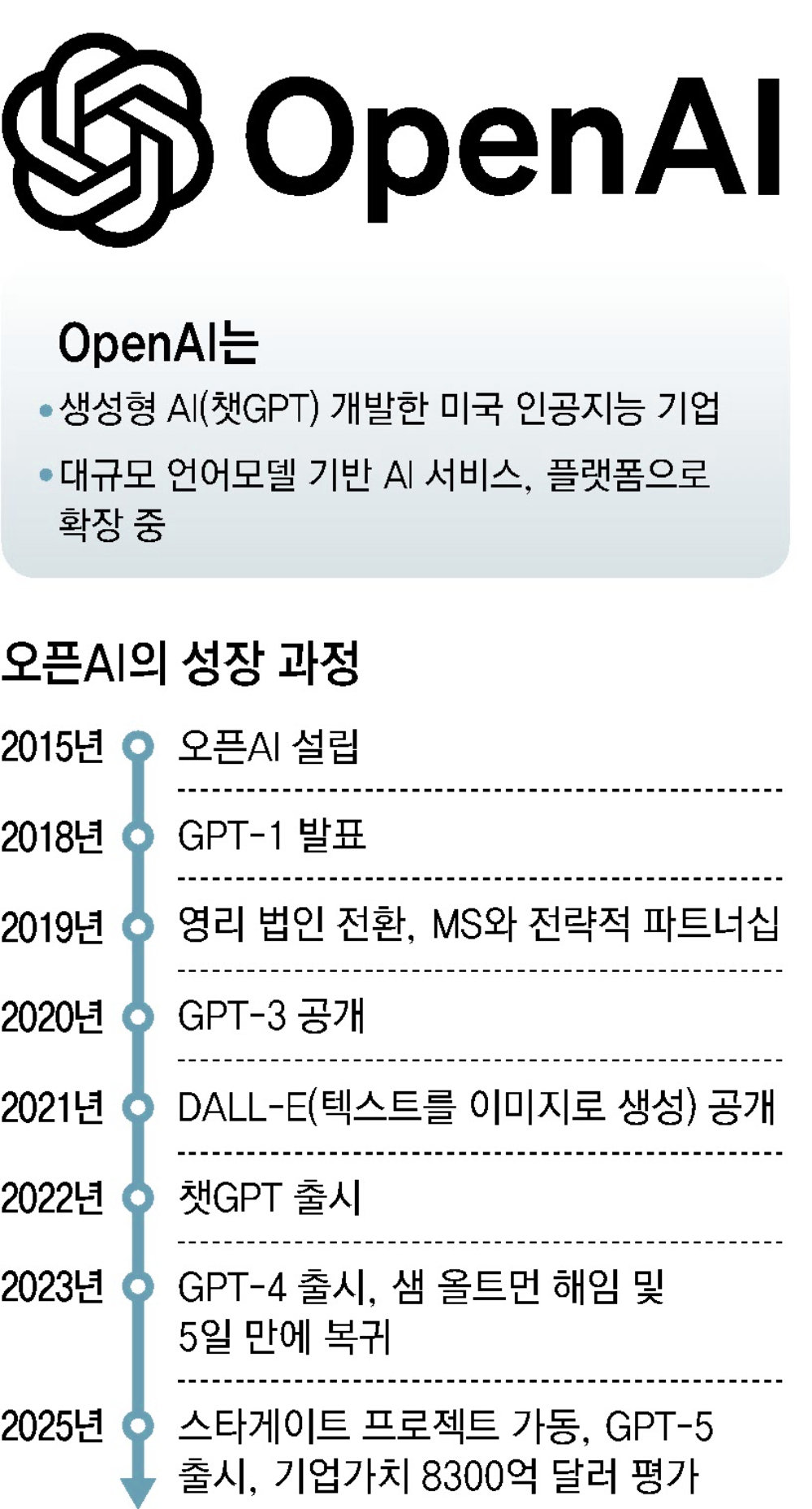오픈AI의 궁극적인 목표는 범용 인공지능(AGI)이다. 오픈AI는 지금 두 세계 사이에 서 있다. 구독과 생태계가 작동하는 소프트웨어의 세계와 전력·공급망·자본이 지배하는 인프라의 세계다. 결국 다음 평가는 더 똑똑한 모델이 아닌 단단한 사업 구조에서 나올 것이다. 8300억 달러의 기업가치를 두고 누군가는 차세대 구글을, 누군가는 거대한 버블을 본다. 분명한 것은 오픈AI의 성공과 실패가 AI 산업의 패러다임뿐만 아니라 인류의 지능에 대한 정의를 바꿀 수 있다는 점이다. 챗GPT로 시작된 혁명은 아직 끝나지 않았다.