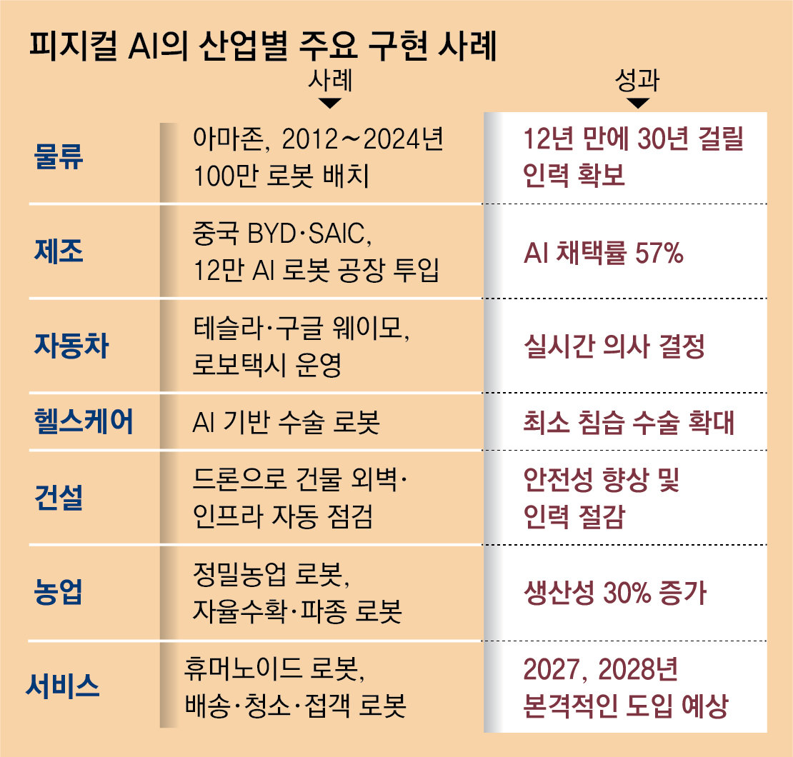 피지컬 AI 시대가 코앞에 와 있다. 한국은 제조 노하우, 첨단 반도체 기술, 빠른 네트워크, 민첩한 기업 문화로 이 변화를 주도할 조건을 갖췄다. 이제 필요한 것은 AI를 새로운 동료로 받아들이고 인간과 기계가 공(共)진화하는 미래를 설계하는 전략적 상상력이다. 피지컬 AI의 미래는 우리가 사는 물리적 공간, 즉 공장, 도로, 건물, 집 등에서 펼쳐질 것이다.