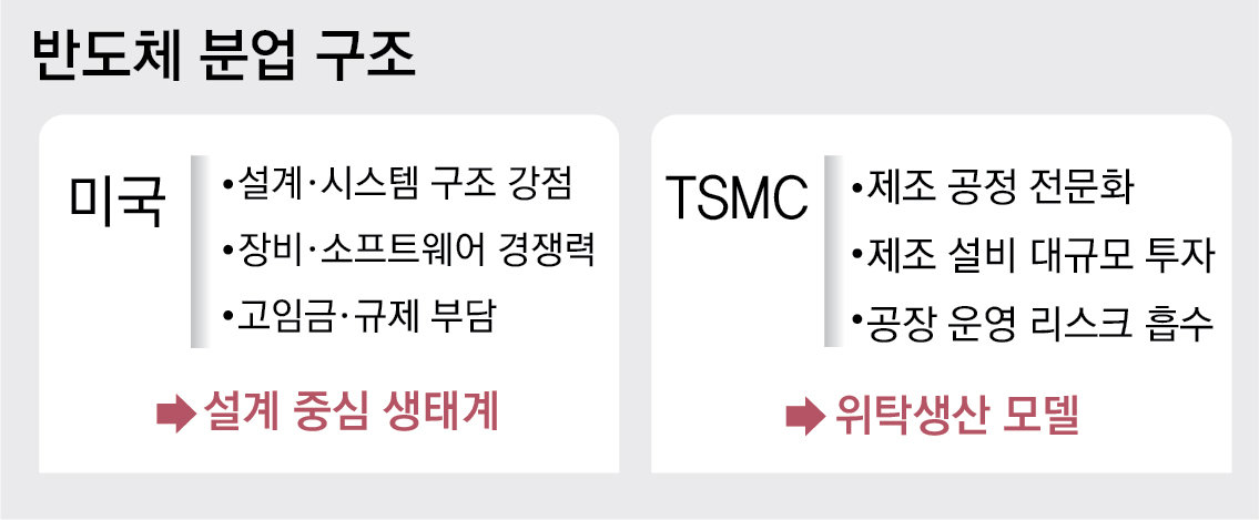 주목할 점은 이 비즈니스 모델이 당시 미국 반도체 생태계의 이해와 정교하게 맞아떨어졌다는 사실이다. 미국은 설계 역량과 장비, 소프트웨어 분야에서는 압도적인 경쟁력을 유지하고 있었지만 미국 내 제조 노동력 비용은 빠르게 상승하고 있었다. 또 노사 구조와 규제 환경 속에서 대규모 반도체 공정을 효율적으로 운영하기가 점점 어려워지고 있었다.