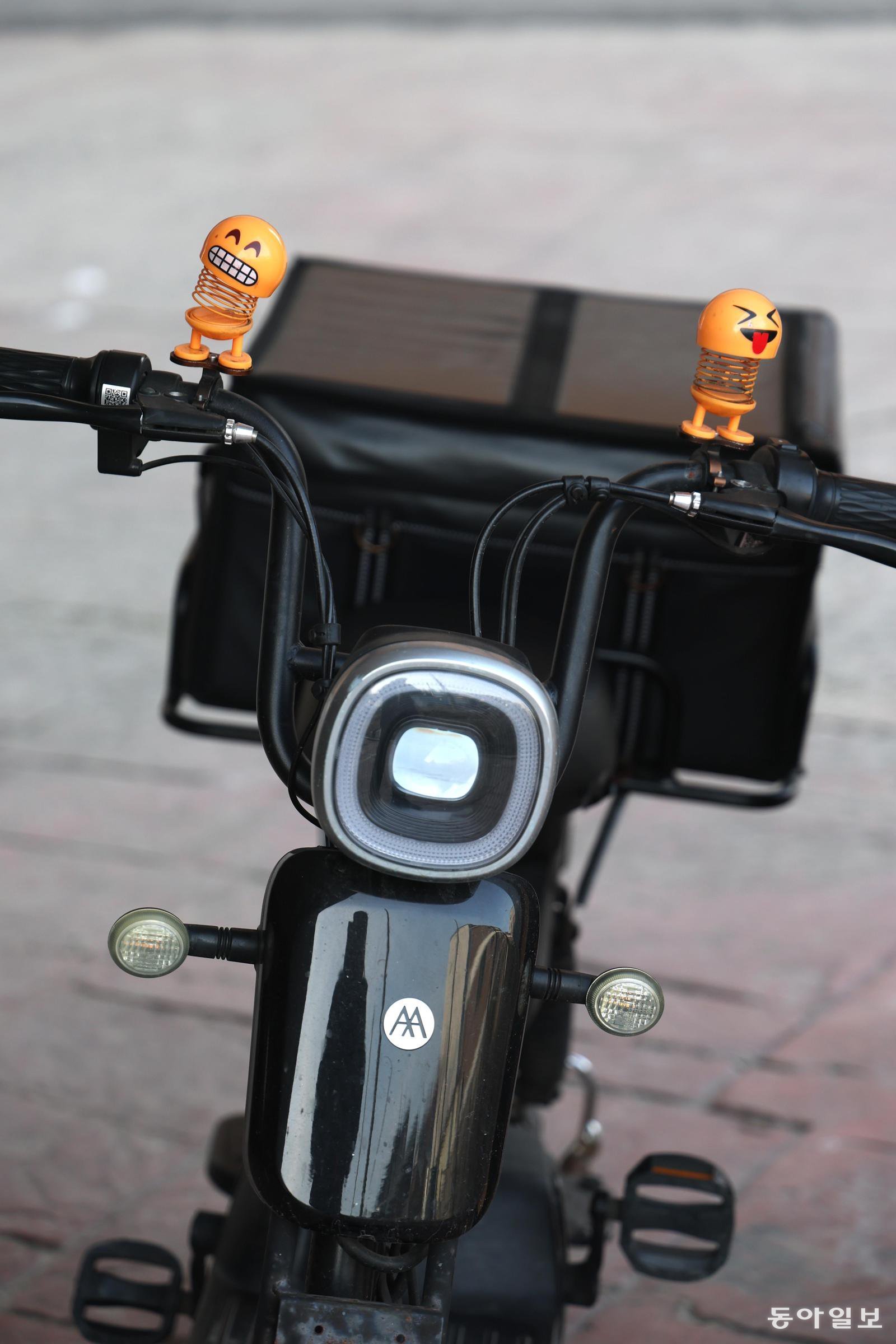 오토바이 위에 웃는 인형 두 개가 나란히 서 있습니다. 헬멧에 가려진 주인의 얼굴 대신, 오늘의 기분을 먼저 전해주는 것 같네요.