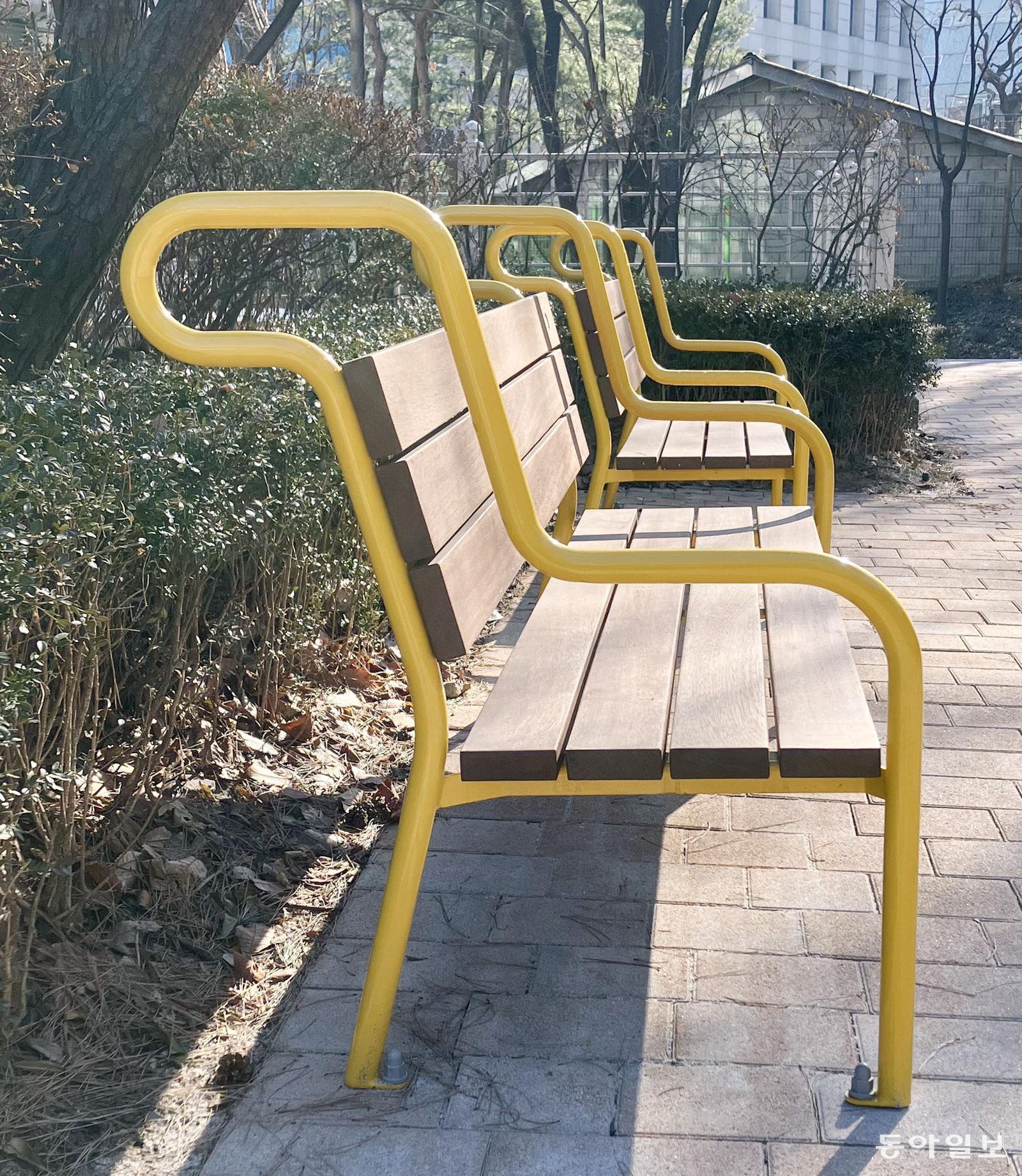 병오년(丙午年) 들어 말 그림을 너무 많이 봤나 봅니다. 벤치의 노란 철제 프레임이 말처럼 보입니다. 여기 앉으면 들판을 달리고 싶어질까요?