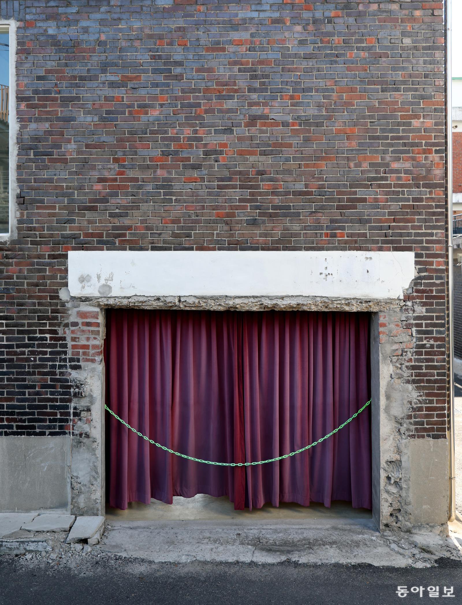 건물에 낸 큰 틈에 작은 무대처럼 붉은 커튼이 내려와 있습니다. 아직 끝나지 않은 이야기가 그 안에 숨어 있을 것 같네요.