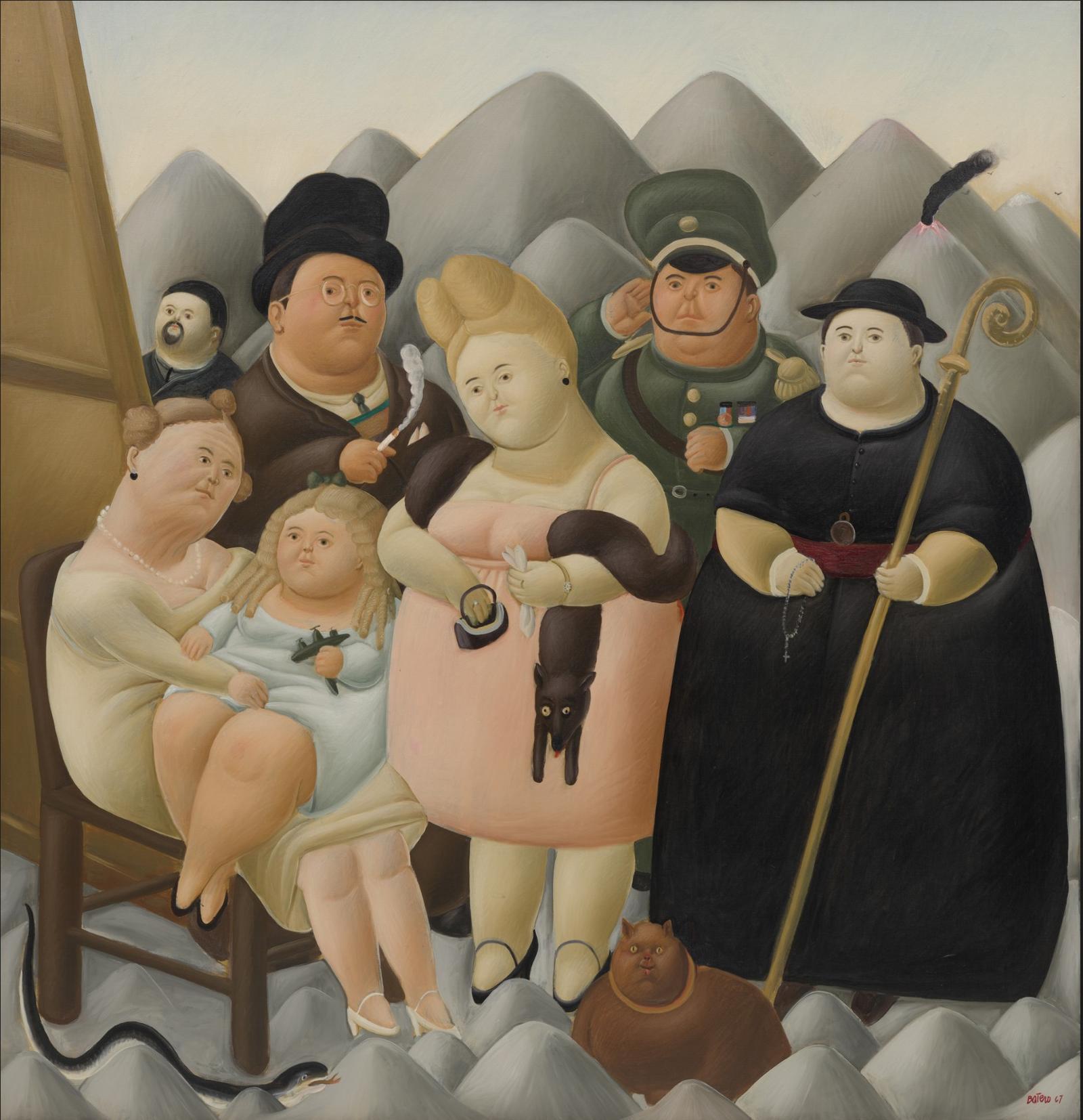 라틴아메리카를 대표하는 화가 보테로는 인물을 과장되게 부풀려 그리는 특유의 양감으로 세계적 명성을 얻었다. 그의 뚱뚱한 인물들은 해학적으로 보이지만, 실은 권위주의와 권력자를 향한 날카로운 풍자다.
