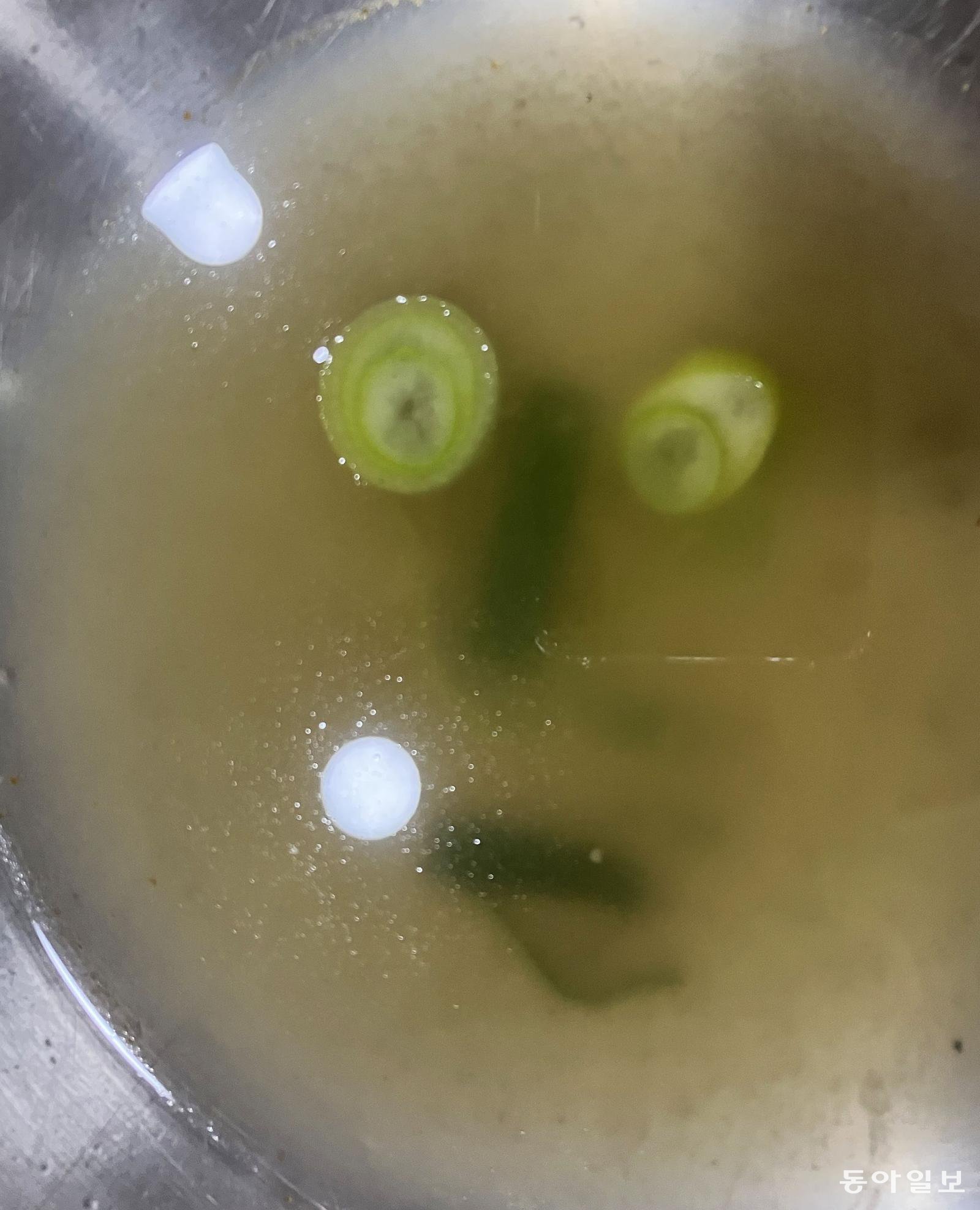 뜨끈한 만둣국을 허겁지겁 먹어치운 탓일까요. 국물이 깜짝 놀라 눈을 동그랗게 뜨고 쳐다보는 듯하네요.