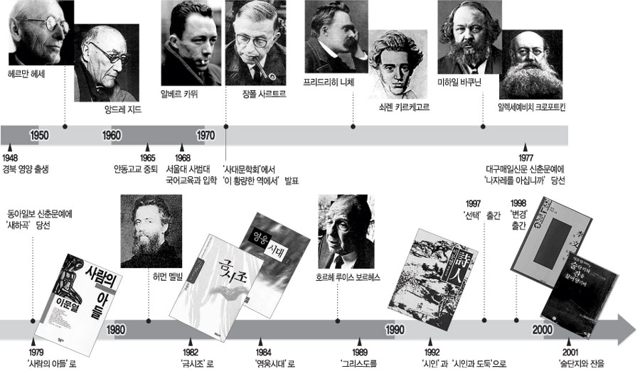 그의 어린 시절을 사로잡았던 것은 감성적인 문학작품들이었다. 그는 한국문학보다 세계문학을 주로 접했고 그 중 헤르만 헤세, 앙드레 지드 등 감수성을 자극하는 작품을 좋아했다. 하지만 10대 후반∼20대 초반에 접어들면서 지적인 작품들을 찾기 시작했다. 그 시기는 실존주의 시대였다.