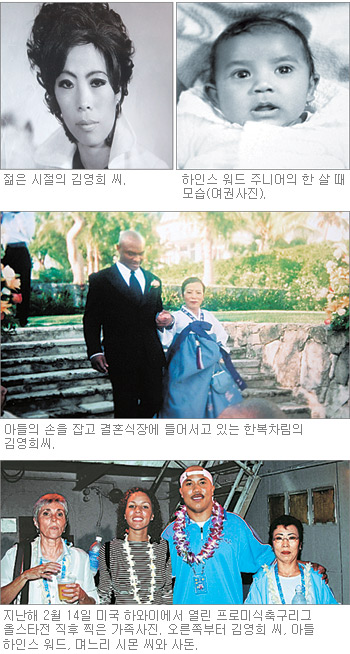 7일 오후(현지 시간) 미국 조지아 주 애틀랜타 외곽의 맥도너 시 자택에서 만난 김영희(59) 씨의 말에선 희미하게나마 그런 세월이 묻어났다. 아들 하인스 워드(피츠버그 스틸러스)가 북미프로미식축구리그(NFL) 제40회 슈퍼볼 MVP가 된 날에도, 아들이 구단 본거지인 피츠버그에서 승리를 축하하는 기념 퍼레이드에 나서던 날에도 그녀는 새벽부터 집 부근 고등학교 구내식당에서 묵묵히 일하고 있었다.