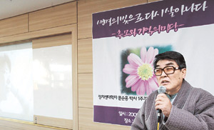 17일 오후 서울 종로구 권농동 밝은사회국제클럽 5층 강당. 은은한 향초 냄새 속에서 나직한 시낭송이 울려 퍼졌다. 서정주의 시 ‘연꽃 만나고 가는 바람같이’였다.