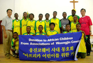 마침 케이프타운에서 열린 ‘세계지방자치단체환경협의회(ICLEI) 세계총회’의 한국대표로 참가한 웅진코웨이 이진 부회장은 이 소식을 사내에 알렸다. 사내 축구동호회 회원들은 후원금을 거둬 축구공과 유니폼을 샀고 생필품과 재활용품도 모았다. 사내 여직원 모임도 동참했으며 이렇게 모인 현물과 성금이 500만 원 상당.