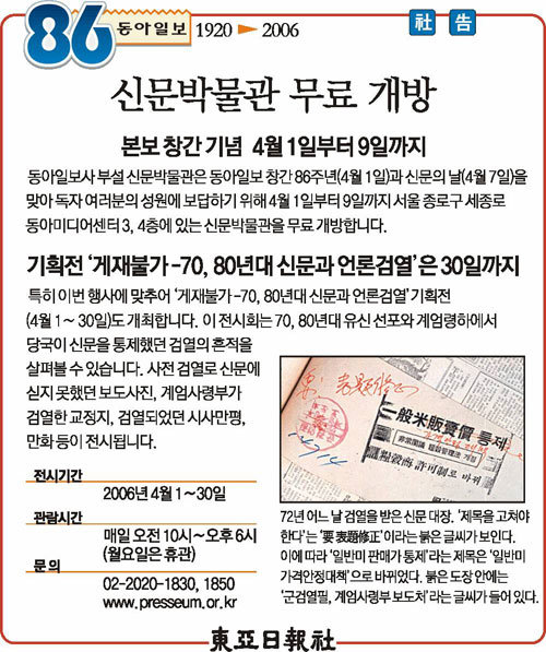 [社 告]신문박물관 무료 개방