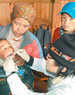 해발 3450m의 고산마을인 네팔 남체바자르. 세계 최고봉 에베레스트로 가는 관문이다. 지난달 25일 통나무집인 ‘로지’를 빌려 마련한 간이 치료소에 ‘할머니’ 로상 씨가 다리를 절뚝거리며 들어섰다. 그는 “티베트에서 4일을 걸어왔다”고 했다.