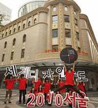 뉴욕타임스는 서울을 ‘2010년 가봐야 할 31곳’ 중 3위로 뽑았다. 서울시 관계자들이 서울 중구 명동예술극장 앞에서 ‘세계디자인수도의 해’를 홍보하는 모습. 사진 제공 서울시