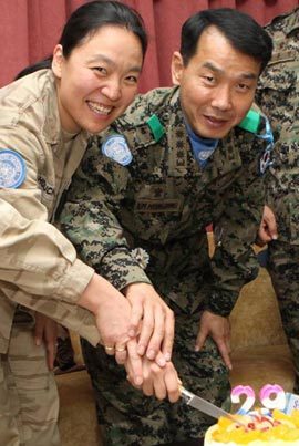 24일 합동참모본부에 따르면 레바논 남부 티레 지역에서 벨기에군으로 평화유지활동(PKO)에 참여한 한국계 셀린 우샤르 중위(29)가 21일 인접한 한국군 동명부대를 찾았다. 한국 이름이 ‘남주’인 우샤르 중위는 1980년 서울에서 태어나 3세 때 벨기에로 입양됐다.