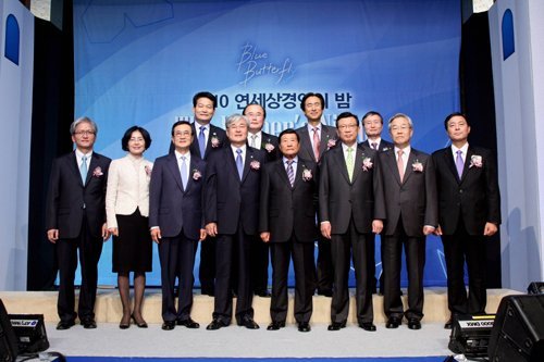 연세대 상경·경영대 동창회(회장 김정수)는 10일 서울 중구 소공동 롯데호텔 크리스털볼룸에서 동문 및 각계 인사 850여 명이 참석한 가운데 ‘2010 연세상경인의 밤’ 행사를 열었다. 이날 행사에서는 노병용 롯데마트 사장, 지대섭 삼성화재 사장이 ‘산업경영부문’, 이인실 통계청장과 송영길 인천시장이 ‘사회봉사부문’, 박지원 두산중공업 사장이 ‘뉴프런티어부문’에서 ‘자랑스러운 연세상경인상’을 받았다.