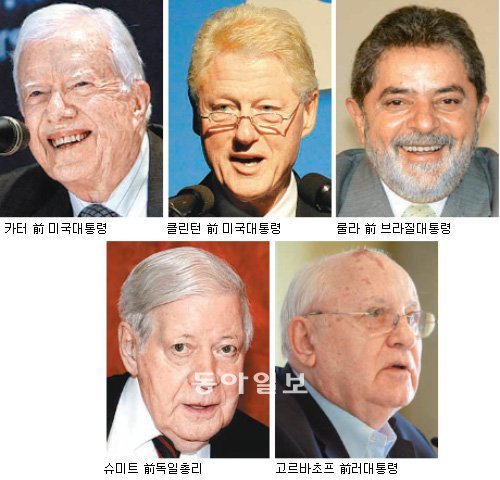 소개된 10명의 지도자는 미국의 지미 카터(86)와 빌 클린턴(65) 전 대통령, 스페인의 호세 마리아 아스나르(59)와 펠리페 곤살레스(69) 전 총리, 독일의 헬무트 슈미트(93)와 게르하르트 슈뢰더(67) 전 총리, 영국의 마거릿 대처(86)와 토니 블레어(58) 전 총리, 루이스 이나시우 룰라 다 시우바(66) 전 브라질 대통령, 미하일 고르바초프(80) 전 소련 대통령이다.