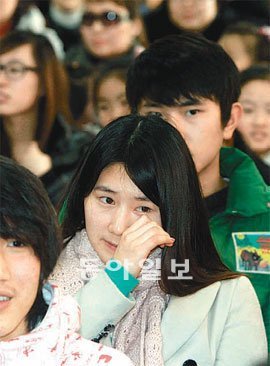 광주 새날학교에서 10일 열린 첫 번째 졸업식에서 중국 출신 여학생이 학교생활 영상을 보며 눈물을 흘리고 있다. 광주=박영철 기자 skyblue@donga.com