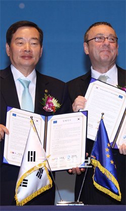 해자지원연합회 회장(왼쪽)과 데이비드 매캐너 유럽범죄피해자지원연합회(VSE) 회장