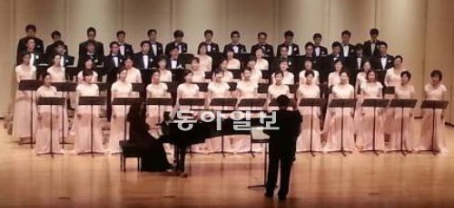 22일 오후 서울 용산구 용산아트홀 대극장 ‘미르홀’에서 공연하는 월드하모니합창단. 월드하모니합창단 제공