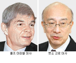롤프 마파엘 주한 독일대사가 3일 오전 10시 반 본사를 방문해 김재호 사장과 환담했다. 마파엘 대사는 “북한 문제에 깊은 관심을 갖고 있다”라며 “한반도 통일에 독일이 기여할 수 있기를 희망한다”라고 말했다. 이날 오후 5시에는 본사를 방문한 벳쇼 고로 주한 일본대사와 김 사장이 한일관계 현안에 관해 폭넓은 대화를 나눴다. 고로 대사는 “최근 악화된 한일관계가 조속히 회복되도록 최선을 다하겠다”라고 말했다.