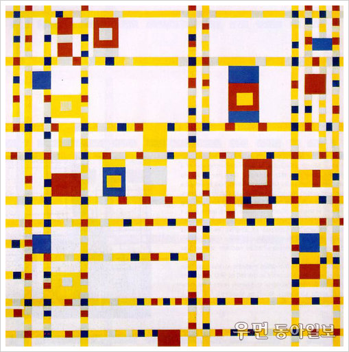 정교한 퍼즐 조합 같기도 하고, 레고 조각을 맞추어놓은 것도 같은 세련된 그림. ‘차가운 추상’으로 대표되는 몬드리안의 ‘브로드웨이 부기우기’입니다. 말 그대로 1940년대 뉴욕의 핫 플레이스인 ‘브로드웨이’와 당시 미국을 휩쓴 음악 ‘부기우기’ 이미지를 담은 매우 트렌디한 작품입니다. 몬드리안은 고향 네덜란드를 떠나 파리, 런던에 머물다 2차 세계 대전 당시 유럽의 전쟁 포화를 피해 노년에 뉴욕으로 갔습니다. 자로 잰 듯 정리된 시가지, 휘황찬란한 마천루. 뉴욕은 유럽 예술가들에게 신세계였고, 몬드리안 역시 최첨단 도시 뉴욕에 반해 이렇게 밝고 활기찬 분위기를 담았습니다. 왼손의 신나는 리듬에 오른손의 간단한 멜로디가 반복되는 부기우기처럼, 수직선과 수평선이 만나면서 리드미컬한 흐름을 만들어내고 있고, 화면 가득한 노란색은 뉴욕의 ‘옐로 캡’을 떠오르게 합니다.
