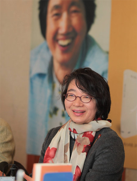 환히 웃는 고 박완서 선생(1931∼2011)의 사진 아래 맏딸 호원숙 씨(61)가 앉았다. 웃을 때면 명랑하게 올라간 입꼬리며 살갑게 부푼 양 볼이 어머니와 똑 닮았다. 20일 호 씨는 박 선생 타계 4주기를 맞아 어머니를 그리워하는 마음을 담은 산문집 ‘엄마는 아직도 여전히’(달)를 출간했다. 이날 박 선생이 생전에 쓴 산문을 모은 ‘박완서 산문집’(문학동네) 7권도 함께 나왔다.