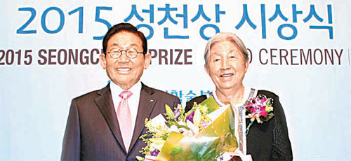 JW중외그룹의 공익재단인 중외학술복지재단은 25일 서울 중구 소공로 웨스틴조선호텔에서 제3회 성천상 시상식을 개최했다. 이종호 중외학술복지재단 이사장(왼쪽)이 수상자인 조병국 홀트아동복지회 부속의원 명예원장과 기념촬영을 하고 있다. JW중외제약 제공