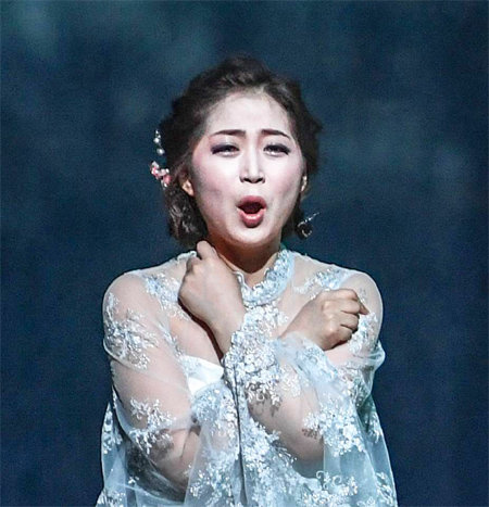 소프라노 홍혜란이 3일 오페라 ‘사랑의 묘약’의 마지막 드레스 리허설에서 아리아를 열창하고 있다. 그는 “내 목소리가 크고 폭발적이진 않지만 작고 아름답게 꾸밀 수 있다”고 말했다. 세종문화회관 제공