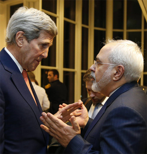존 케리 미국 국무장관(왼쪽)과 모하마드 자바드 자리프 이란 외교장관이 이란 핵 협상 타결을 이끈 공로로 영국 ‘채텀하우스(왕립국제문제연구소)상’ 올해 수상자로 선정됐다. 영국 싱크탱크인 채텀하우스는 24일(현지 시간) “수상자들은 21세기 국제 관계에서 가장 다루기 힘들었던 외교적 교착 상태를 해결하는 데 중대한 역할을 했다”고 밝혔다.
