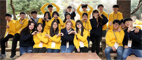 5일 전남대 캠퍼스에서 2017년 삼성드림클래스 겨울캠프에 참가한 중학생, 대학생들이 기념촬영을 하며 각오를 다지고 있다. 삼성그룹 제공