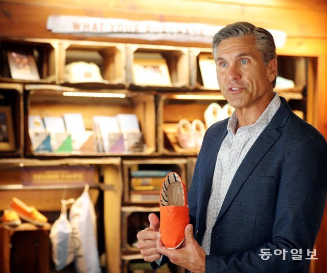 탐스 신발은 한국에서만 매년 30만 켤레가 팔리고 있다. 그는 “탐스의 출발지인 북미 지역을 제외하면 탐스에 대한 인지도가 제일 높은 시장이 한국”이라며 “트렌드에 가장 민감한 한국 소비자의 취향과 그에 따른 마케팅 방법을 배우려고 한국을 찾았다”고 말했다.