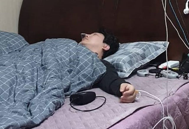 자택에서 신은총 예비역 하사가 영양제 주사를 맞고 있는 모습. 신은총 예비역 하사 제공